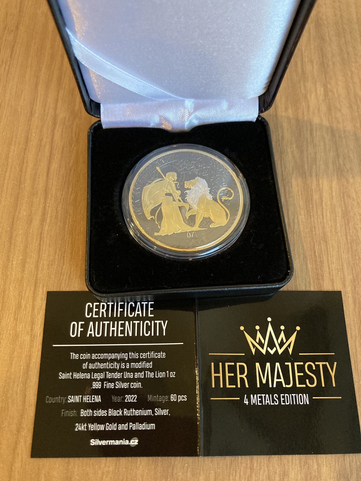 - 美術品・アンティーク・コレクション > コレクション > 【限定60枚】2022年 ウナとライオン 1オンス 純銀 発行枚数60枚】ウナとライオン 2022年版 ブラックルテニウム仕様 24金