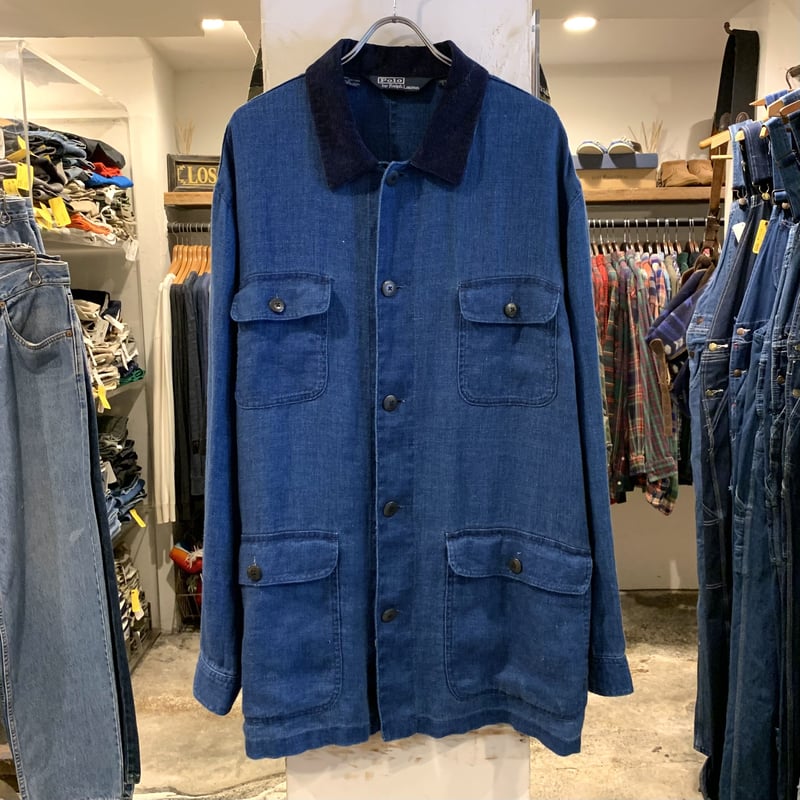 - メンズ > ジャケット・アウター > POLO Ralph Lauren 100%リネン インディゴ カバーオール 90s POLO by Ralph Lauren リネンカバーオール インディゴリネン ラルフ