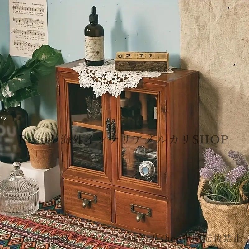 - 棚・ラック・シェルフ > 木製ラック・ウッドラック > 木製ラック 飾り棚 キャビネット チェスト アンティーク ビンテージ 昭和レトロ アンティークチェスト 木製収納棚 キャビネット ヴィンテージ調 カフェ