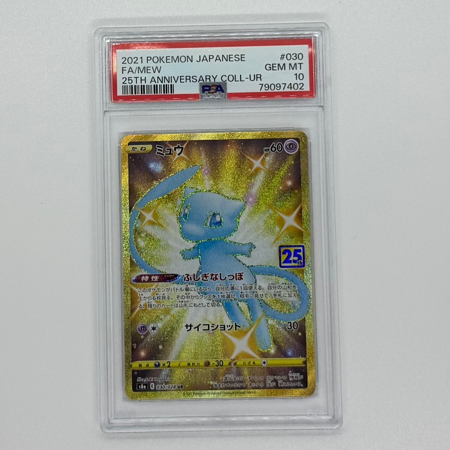 | 商品の特徴 | PSA 10 ミュウ UR 25th 030/028。ミュウ 25th UR PSA10 ANNIVERSARY COLLECTION PSA 10 Mew UR 030/028。PSA10鑑定済〕ミュウ【P】{343/S-P}。ミュウur psa10コレクション用で持ってたカードになります。ARS10+ > PSA10 ミュウ UR プロモカード SAR ポケモンカード 連番。急遽お金が必要になったため出品しました。PSA10メイ SR SM11b ドリームリーグ 067/049。状態は鑑定番号から確認お願いします。Nのゾロアークex ur エラーカード。 | ||
