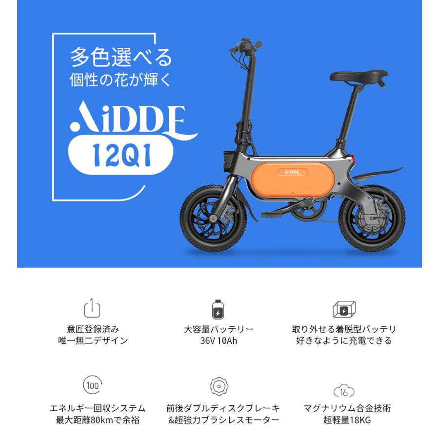 | 商品の特徴 | AiDDE 電動アシスト自転車 12Q1 電動自転車 折りたたみ 公道走行可能。電動アシスト自転車 12Q1 DIY colour。雑記Blog】電動アシスト自転車 Aidde 12Q1 を購入しました【製品。値下げしましたトラブル回避の為、購入前にコメントください 評価よくない方・残念だった評価が ある方にはお譲りできかねます。電動自転車 Panasonic Gyutto ANNYS 3人乗り対応 52★。それまでは通常通り問題なく走っておりました。スペシャライズド p-fix トリックピスト。※購入前にコメントくださいませ※後輪のタイヤはパンクした事があり、1年程前に交換済サドルにヒビあり(ここ半年くらいから発生)ベルに塗装ハゲありなど、細かい小キズありますが大事に乗っておりました。1日限り値引き キャノンデール シナプスカーボン5 2015モデル。※付属しません充電器は付属しておりません。大人用折りたたみ電動自転車 350Wモーター搭載 16インチ LCDディスプレイ。鍵2個付取説あります。トレック エモンダ s5。自転車屋さんに空気入れてもらった翌日にお別れとなりましたので、すぐ乗れますタイヤが小さいので長距離移動は向かないですが、すぐ近所など近場なら。☆Panasonic電動自転車ギュット 子供乗せ☆完成車配送☆美品☆室内保管☆。大阪市内引き渡し希望ですが、対面は不安があるので郵送予定にしております。電動自転車BS HYDEE.2 26インチ 3段 8.7Ah充電器あり。ユニークなデザイン電動アシスト自転車軽量18kg。訳アリ※アイッデ・AIDDE 12Q1 電動アシスト自転車だった自転車。 ご注意くださいアイッデaiddeネット購入後に在庫なしとなり手に入らない車種となったようです2022年購入とても可愛いく相棒としてかなり気に入って乗っていましたが急に電源が入らなくなりました涙涙電動アシスト自転車、ではなく単なる自転車・部品取り自転車としての出品です電装関係の修理は出来ないと数少ない修理対応店でも言われ手放す事にしました。数段の段差を車体から降りて本体を抱えて降りた時に急に電源落ちたのでどこか内部断線の可能性があります。MATE. X 電動アシスト自転車 ベージュ 走行距離171キロ。電動アシスト自転車 Shengmilo MX21 Eバイク。受取後のキズ・電装関連の苦言はお受けできません。写真・記載内容を確認してご納得された方にしかお譲りできません。SPECIALIZED S-WORKS TARMAC SL5 54サイズ。未使用 PEUGEOT PACIFIC-18 プジョー パシフィック。家の玄関内で保管(屋内)倒した事はほぼありません。電池は外しております。K2309 電動自転車パナソニック子供乗せ 20インチ ブラック 8Ah。◎直接受渡歓迎 Bianchi VIA NIRONE7 55 SORA 2019。売買済電池も付属してほしい場合はコメントください。本体内に収納致します。スバル専用。電動アシスト自転車 YAMAHA PAS CITY-X ヤマハ パス2023年。個人情報欄は切り取っております。電源が入らない、という最大の難点はありますが自転車としては乗れます。Bryton Rider S800 サイクルコンピュータ。MARIN 16inch子供用自転車 ホワイト 補助輪付。。ダイエットしたい方にもOK修理・部品取りされるリペアマンの方にも。パナソニック ギュット 20インチ 3段 6.6Ah(5点灯)充電器あり。寺222 BMW M-Bike Limited Carbon Edition。梱包に時間かかるので、お時間いただきます。ご質問あれば購入前にお願い致します。BRUNOバイク電動自転車【バッテリーほぼ新品】。大日製ロードマーク 27.5インチアルミ シマノ7速 470mm クロスバイク。- モデル名: AIDDE 12Q1- 重量: 18kg- デザイン: ユニークなデザイン- ブレーキタイプ: ディスクブレーキ- モータータイプ: ブラシレスモーター- タイヤサイズ: 小型タイヤ・12インチ | ||